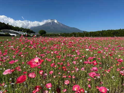 30万平方メートルの屋外のお花畑。富士山と背景にした絶景がひろがります。