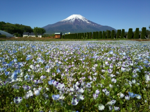 30万平方メートルの屋外のお花畑。富士山と背景にした絶景がひろがります。