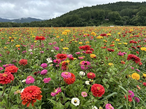 黄花コスモス・コスモス 赤そば・百日草きれいに咲いています。