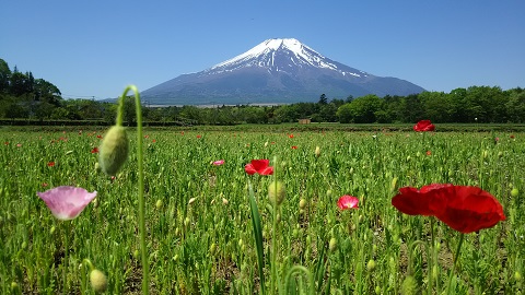 30万平方メートルの屋外のお花畑。富士山と背景にした絶景がひろがります。