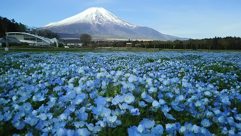 30万平方メートルの屋外のお花畑。富士山と背景にした絶景がひろがります。