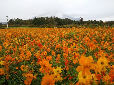 花畑・農園エリアの百日草とコスモスは台風の影響もなくキレイに咲いています。コスモスの見頃はもう少し先になりそうです。