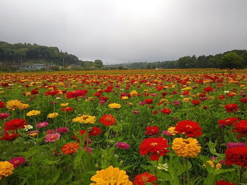 第二ゲート付近のひまわり迷路が始まりました。 ひまわり・百日草・黄花コスモスが咲いてます。