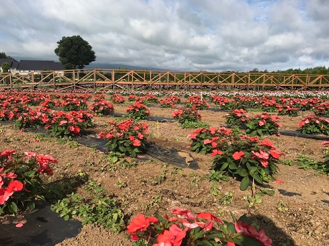 清流の里のアナベルは、咲きそろってきました。 サンパチェンスも大きくなってます。
