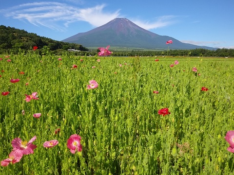 朝から富士山がよく見えてます。 かすみ草・カリフォルニアポピーは見頃です。 キカラシは、ピークを過ぎました。 ポピー・ヤグルマギクは咲き始めです。